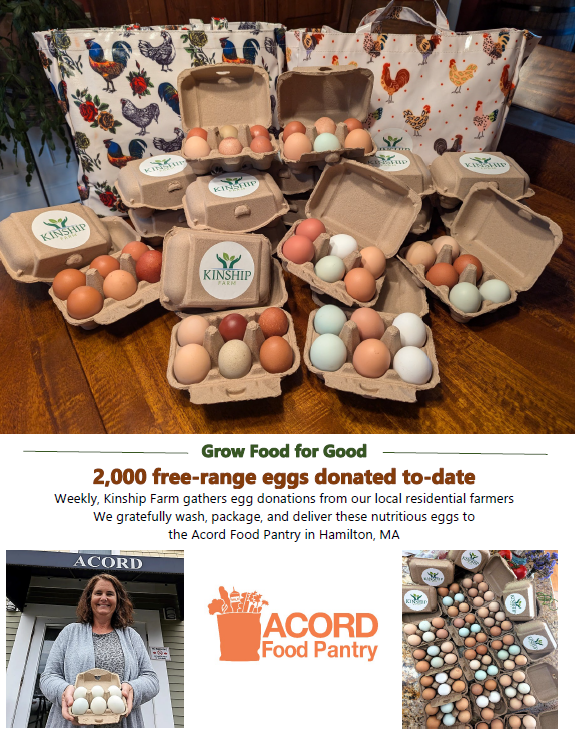 And to our incredible, generous backyard farmers and the dedicated volunteers at Acord Food Pantry - Thank You! We couldn’t do this without you. You and your happy, healthy hens benefit the environment and provide a beautiful example of how individuals in a community can come together to support one another.