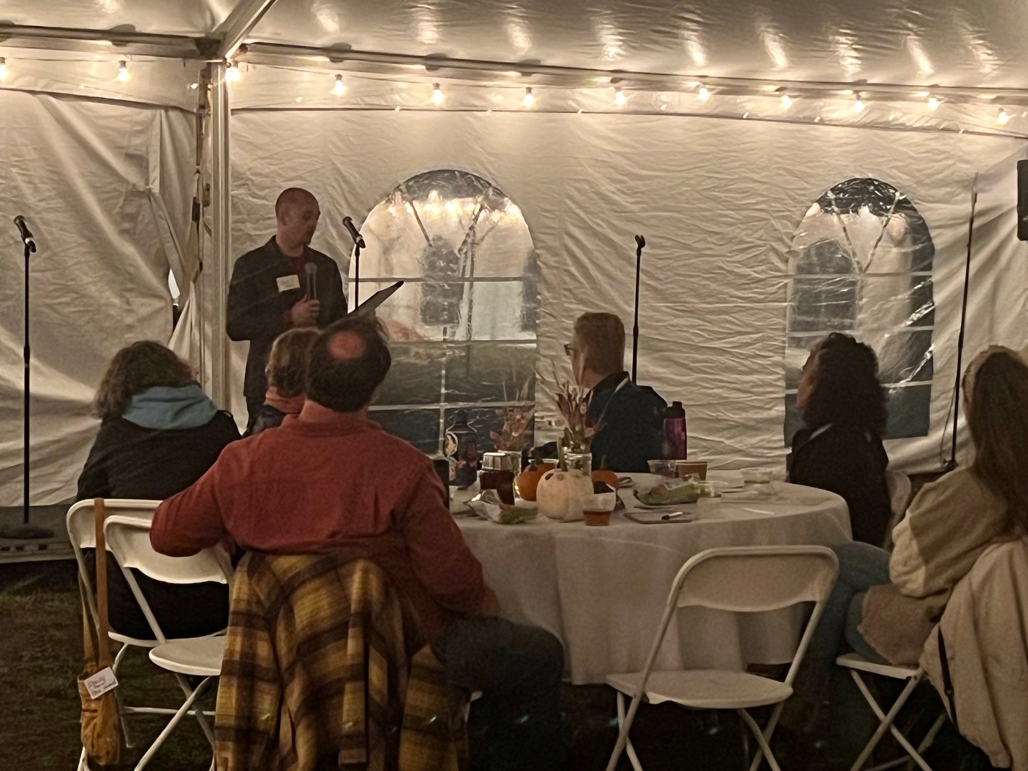 On Saturday, September 30, 2023 over 70 people came together for woodland tours, dinner, and a presentation by two professors from Boston University School of Theology (BUSTH) Dr. Jimmy McCarty and Dr. Becky Copeland, who respectively directs the Tom Porter Religion and Conflict Transformation (RCT) and Faith and Ecological Justice (FEJ) programs.