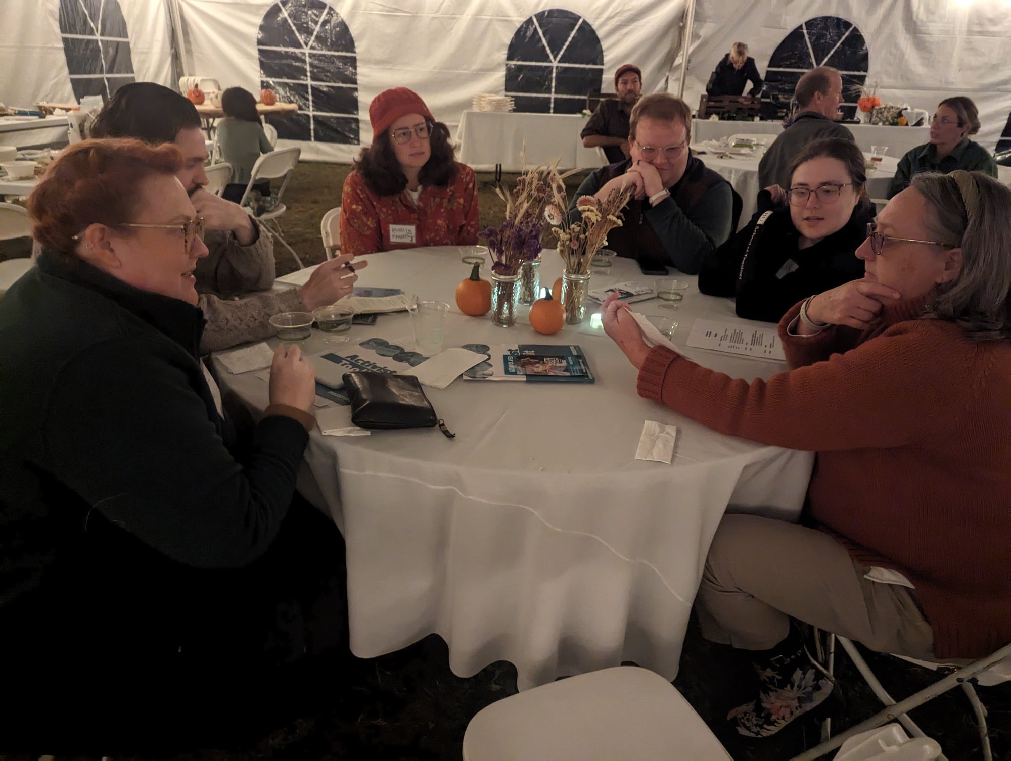 Before dinner, there were guided walking farm tours, lawn games, and other activities. During a savory dinner and dessert, Speakers Maggie Nowak and Colleen Kielbania presented information about food literacy activities and funding, 4H and other national student agricultural involvement, and invited attendees to share their own insights related to the intersections of farming, relationships, and the environment. In support of all attendees, quieter, self-serve, family-friendly activities remained available throughout the afternoon and evening, including during the optional, one-mile, 45 minute walking tour.